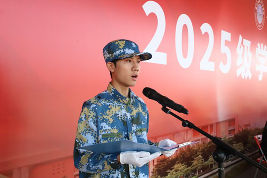 汽車與交通工程學院2025級學生招冠宏代表全體參訓學生鄭重承諾:以軍人標準嚴格自律,聽從指揮、令行禁止,學習教官過硬作風,把每一次訓練都當作對意志的磨礪;嚴守訓練紀律,認真完成每項任務,在訓練中傳承偉大抗戰(zhàn)精神,展現(xiàn)新時代青年的責任與擔當;勇于吃苦奮斗,不畏烈日與疲憊,在自我超越中踐行“強國有我”的青春誓言。
