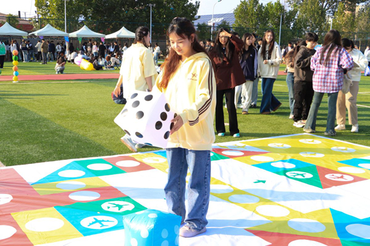 本次活動聯(lián)動各二級學(xué)院,精心構(gòu)筑三大心理成長路徑,系統(tǒng)整合七大板塊內(nèi)容,引領(lǐng)學(xué)生在沉浸式體驗(yàn)中探索自我、滋養(yǎng)心靈。團(tuán)隊協(xié)作區(qū)設(shè)有“合力建塔”“大型撲克牌”等項(xiàng)目,引導(dǎo)學(xué)生在溝通與配合中建立信任,從集體勝利中獲取深層歸屬感與快樂;思維挑戰(zhàn)區(qū)包含“智拼七巧板”“地面飛行棋”“大富翁”等智力比拼項(xiàng)目,激發(fā)學(xué)生在解決問題中迸發(fā)靈感,從突破自我中獲得成就與興奮;活力釋放區(qū)則通過“跳舞毯”“快樂抖球”“禮射”“沙包”等藝術(shù)與競技活動,鼓勵學(xué)生盡情舒展身心,在專注與律動中喚醒身體能量,在歡笑與挑戰(zhàn)中自然激活積極情緒,釋放多巴胺神經(jīng)遞質(zhì),真正實(shí)現(xiàn)“在玩中學(xué)、在樂中長”。