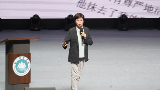 作為“末代工農(nóng)兵學(xué)員”,她回溯1978年的求學(xué)記憶,并將此與著作《我 末代工農(nóng)兵學(xué)員》中的青春記錄相結(jié)合?吹匠瘹馀畈奶┛茖W(xué)子,她聯(lián)想到自己少年時(shí)拘謹(jǐn)、僵硬的學(xué)習(xí)生涯。這段跨越時(shí)代的對比,以其個(gè)人經(jīng)歷為切口,引發(fā)了在場師生對人生與時(shí)代的深刻思考,令人動(dòng)容。