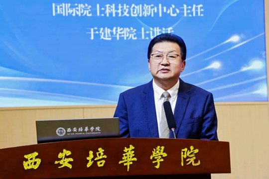 英國皇家學(xué)會(huì)工藝院院士、國際院士科技創(chuàng)新中心主任、西安培華學(xué)院名譽(yù)校長于建華院士在致辭中介紹了國際院士科技創(chuàng)新中心的基本情況,他指出國際院士科技創(chuàng)新中心作為匯聚國內(nèi)外頂尖院士的高端平臺(tái),目前已有數(shù)百位兩院及國際院士加盟,致力于打造“人才庫、項(xiàng)目庫、資本庫”,加速超級項(xiàng)目落地。他希望西安培華學(xué)院能積極承擔(dān)科技創(chuàng)新重任,加快成果轉(zhuǎn)化,推動(dòng)技術(shù)“引進(jìn)來”與“走出去”,打造民營高?萍紕(chuàng)新典范。