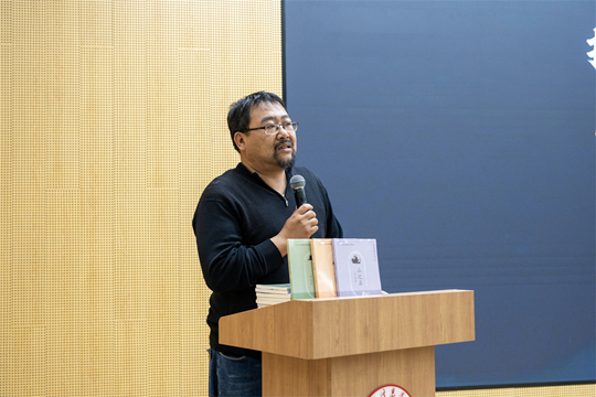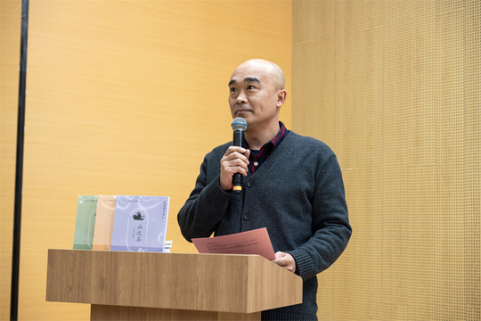 晉中信息學(xué)院創(chuàng)意寫作學(xué)院教師代表鐘小駿在發(fā)言中回顧了指導(dǎo)學(xué)生創(chuàng)作的歷程。他提到,從選題采風(fēng)到反復(fù)修改,每一部作品都凝聚了師生共同的心血。他表示:“如果將《烏馬河文叢》比作是一條文學(xué)長(zhǎng)河,每一位作者都是長(zhǎng)河中美麗的浪花。文學(xué)創(chuàng)作是艱苦而美好的事業(yè),同學(xué)們?cè)谕诰蛏轿魑幕耐瑫r(shí),也完成了一次次自我的成長(zhǎng)與蛻變!