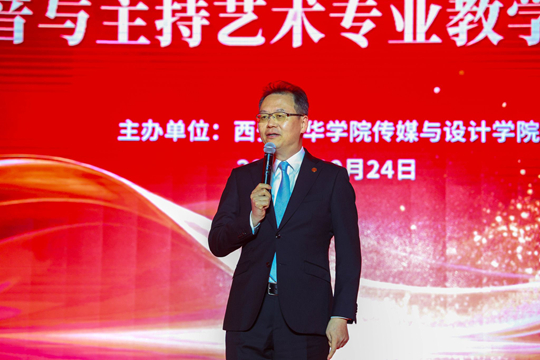 西安培華學(xué)院理事長姜波致辭。姜波理事長在致辭中充分肯定了播音與主持藝術(shù)專業(yè)所展現(xiàn)的深厚積淀與蓬勃生機(jī),并對師生們在藝術(shù)創(chuàng)作與實(shí)踐中取得的豐碩成果表示欣慰。他希望全體師生凝心聚力,持續(xù)創(chuàng)新,共同書寫專業(yè)發(fā)展的新篇章。