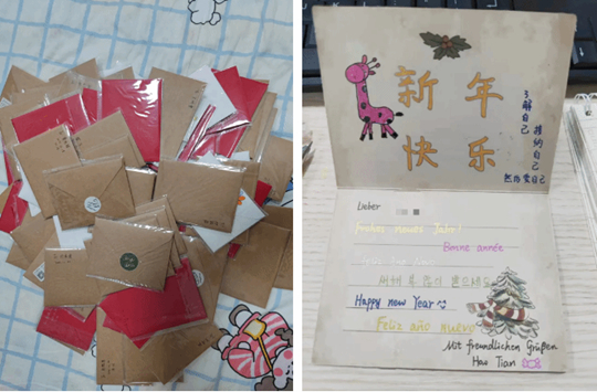 在她看來,輔導員并非完美的“教育者”,而是需要與學生共同成長的“同行者”。深夜發(fā)現(xiàn)學生在樓道流淚,她坐下陪伴兩小時,傾聽學生的困擾與過往心結,用自身經歷分享經驗,引導學生將消極情緒轉化為自我包容的力量;為每一位學生手寫新年賀卡,字里行間滿是真誠祝福;帶領學生開展團日活動、社區(qū)讀書會,在集體活動中提升凝聚力;走訪宿舍、召開誠信考試班會,將日常管理化作育人契機。