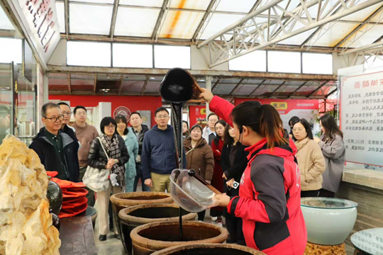 山西醋博園是一個(gè)集醋文化展示、生產(chǎn)工藝體驗(yàn)和科研創(chuàng)新于一體的綜合性園區(qū)。在參觀過程中,三校四區(qū)一行人深入了解了醋博園的完整生產(chǎn)流程及豐富的文化展覽區(qū)域。從最初嚴(yán)格精細(xì)的原料篩選,到傳統(tǒng)與現(xiàn)代工藝結(jié)合的發(fā)酵陳釀過程,再到高效衛(wèi)生的自動(dòng)化成品包裝環(huán)節(jié),每一道工序都充分彰顯了企業(yè)在質(zhì)量控制上的嚴(yán)謹(jǐn)態(tài)度、對傳統(tǒng)釀造技藝的匠心傳承,以及不斷推動(dòng)技術(shù)升級(jí)與創(chuàng)新的企業(yè)精神。
