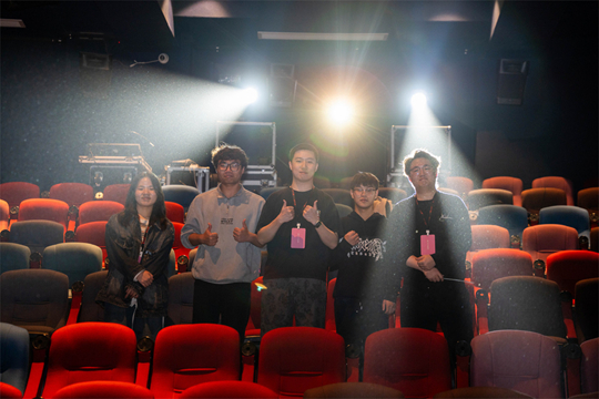 臺前的精彩,離不開幕后的默默付出。燈光師鹿馨月同學說:“燈光不只是照亮舞臺,它是情緒的語言,是故事的延伸!闭{(diào)音臺前,調(diào)音師衛(wèi)夢飛同學正全神貫注應對著陌生場地帶來的多重挑戰(zhàn)!俺醯酱鬀錾降哪吧鷪龅兀佣、對頻、調(diào)參數(shù)都比校園活動更有挑戰(zhàn),但當演員臺詞清晰傳遞、音樂與劇情完美融合,我才懂調(diào)音不只是技術(shù)操作,更是用聲音為戲劇‘搭臺’,也對‘聲音服務于藝術(shù)’有了更真切的理解!