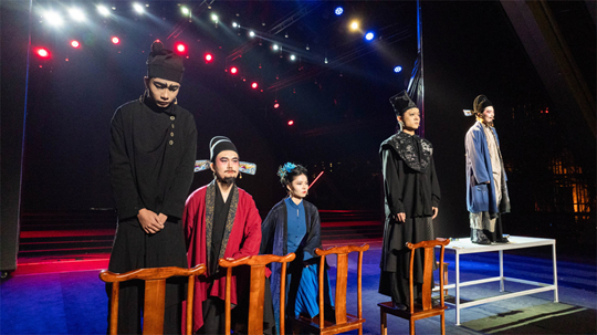 當歷史的梆子聲漸漸遠去,那些時光深處的人性博弈與初心堅守,讓我們深切體會到:無論時代如何變遷,“理解”與“和解”始終是人類共通的精神渴求。從封建官場的權(quán)力博弈到普通人的情感羈絆,戲劇的魅力正在于讓我們在不同的故事里,看見相通的心靈困境與精神向往;鸢褟V場・黑匣子2的光暈緩緩籠罩舞臺,原創(chuàng)音樂劇《咸澀的星群》以一場跨越時空的親情對話,為這場戲劇之旅畫上溫暖句點。舞臺之上,一邊是被現(xiàn)實磨平棱角、執(zhí)著于“求穩(wěn)”的當代青年,一邊是懷揣闖蕩夢想、卻不善言辭的年輕父親,兩人在隔空呼應中,將“求穩(wěn)”與“追夢”的代際矛盾層層剖開,也慢慢讀懂了彼此沉默背后未曾言說的深情。