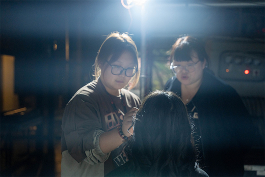后臺化妝間里,化妝師吳穎嫻同學,懷著忐忑又熱忱的心情投入工作!斑@是我第一次參與如此盛大的戲劇節(jié),握著化妝刷為演員勾勒貼合角色的眉眼,看著他們從青澀的樣子變?yōu)閯≈腥嗽谖枧_發(fā)光,成就感滿滿!倍b師楊淇同學正細心熨燙著演員們的服裝:“特別感謝學校給的機會!作為非服裝專業(yè)的愛好者,我在大涼山學到了很多彝族服飾的非遺特色,回去后想跟著老師深耕這一領(lǐng)域,讓傳統(tǒng)之美融入創(chuàng)作!蔽枧_一側(cè),宣傳團隊的攝影攝像記者、文字記者,正以專業(yè)視角捕捉著每一個值得定格的瞬間,相機與無人機的靈活切換,既定格了演員演繹的細膩質(zhì)感,也記錄了舞臺呈現(xiàn)的細節(jié)亮點,全方位留存下演出的精彩全貌。整個劇場內(nèi),臺前幕后,每一個人都在用專業(yè)與熱愛,共同書寫這場戲劇之旅的精彩篇章。