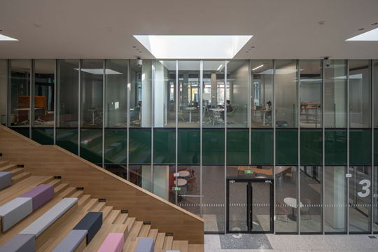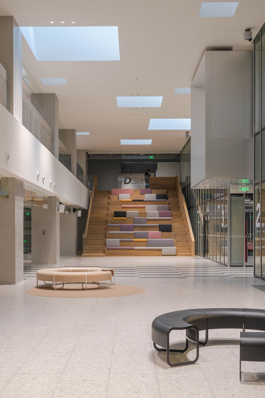 不僅如此,春上山南大堂樓梯等功能性空間的設(shè)計(jì),也被精準(zhǔn)轉(zhuǎn)化為美學(xué)語言,回應(yīng)“全人教育”對場景的要求,在潛移默化中增強(qiáng)學(xué)生的主體認(rèn)同與歸屬感。