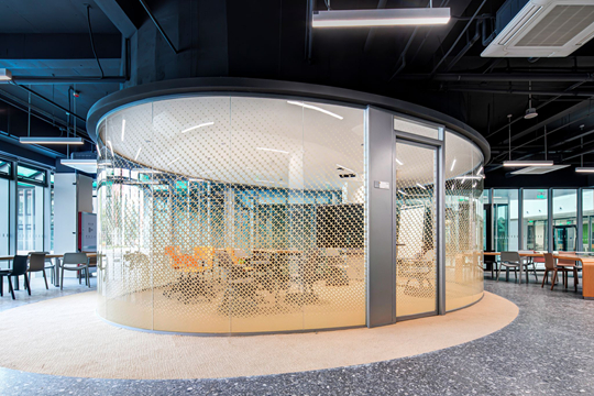 裙樓內(nèi)部設(shè)有泡泡空間(圓形教室)、鼓勵(lì)自由交流的非正式學(xué)習(xí)區(qū)、公共討論區(qū)、校企合作會(huì)議室、兼具休閑與展覽功能的復(fù)合空間、以及充滿社交氛圍的咖啡廳等,講座、展覽、藝術(shù)品展陳等活動(dòng)也將在這里發(fā)生,激發(fā)即興的交流與碰撞。