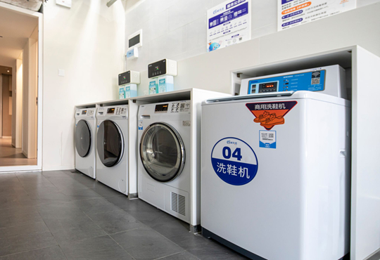 生活設(shè)施的周到配置也同樣重要。除了住宿單元,每層樓還設(shè)有公共空間與多功能服務(wù)房,包含可用于學(xué)習(xí)輔導(dǎo)的多功能室、公共洗衣間、衛(wèi)生間,以及洗衣機(jī)、烘干機(jī)、洗鞋機(jī)等設(shè)備。這些功能性空間都被貼心地安置在遠(yuǎn)離住宿區(qū)的走廊端頭,實(shí)現(xiàn)了動(dòng)靜分區(qū),全方位承載學(xué)生學(xué)習(xí)與生活的復(fù)合需求。