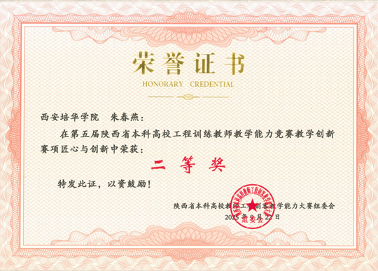 近日,在陜西省教育廳主辦的第五屆陜西省本科高校工程訓(xùn)練教師教學(xué)能力競(jìng)賽上,西安培華學(xué)院智能科學(xué)與工程學(xué)院教師朱春燕、創(chuàng)客中心教師黨雄虎憑借扎實(shí)的教學(xué)功底與實(shí)踐能力,分別榮獲賽事二等獎(jiǎng)。
