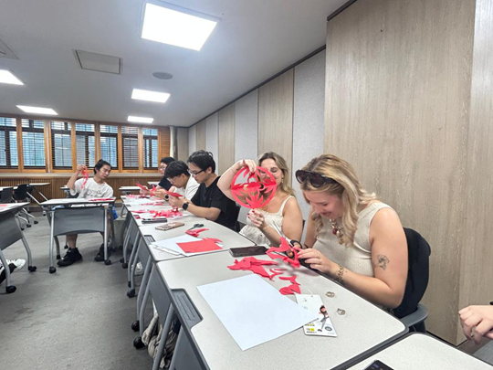 近日,泰山科技學(xué)院赴韓國(guó)漢陽(yáng)大學(xué)交換生團(tuán)隊(duì)成功舉辦了一場(chǎng)別開(kāi)生面的中國(guó)非物質(zhì)文化遺產(chǎn)體驗(yàn)活動(dòng)。來(lái)自韓國(guó)、法國(guó)、尼泊爾、孟加拉國(guó)等6個(gè)國(guó)家的國(guó)際學(xué)生齊聚一堂,共同感受中國(guó)剪紙藝術(shù)的獨(dú)特魅力。