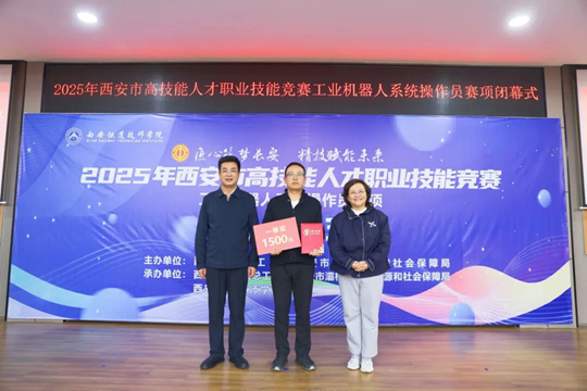 西安鐵道技師學(xué)院副校長李林威致閉幕詞,他向圓滿完成執(zhí)裁工作的專家裁判、奮勇拼搏斬獲佳績的參賽選手,以及為賽事提供保障的工作人員和支持單位致以誠摯感謝。他指出,本次競賽全程彰顯“精益求精”的工匠精神與“追求卓越”的技能追求,選手們憑借扎實(shí)的操作能力與創(chuàng)新解題思路交出亮眼“技能答卷”,充分展現(xiàn)新時(shí)代高技能人才的風(fēng)采與擔(dān)當(dāng)。同時(shí),賽事以“公平、公正、專業(yè)”為原則,不僅實(shí)現(xiàn)“以賽會(huì)友、以賽促學(xué)”的初衷,檢驗(yàn)了西安市工業(yè)機(jī)器人領(lǐng)域技能人才培養(yǎng)成果,為學(xué)校優(yōu)化“賽教融合、崗課賽證”育人模式注入新動(dòng)能。