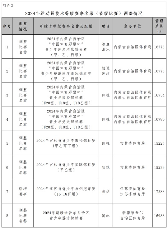 2.2024年運(yùn)動(dòng)員技術(shù)等級(jí)賽事名錄(省級(jí)比賽)調(diào)整情況.pdf點(diǎn)擊查看