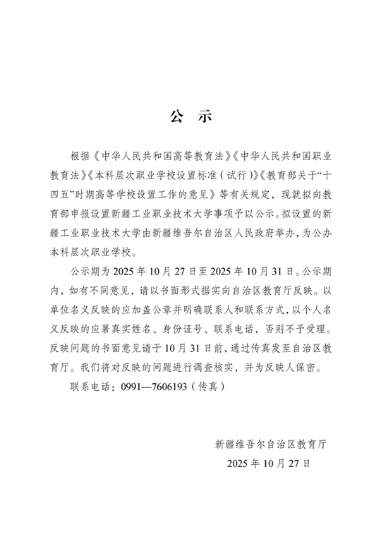 新疆?dāng)M設(shè)置新疆工業(yè)職業(yè)技術(shù)大學(xué)