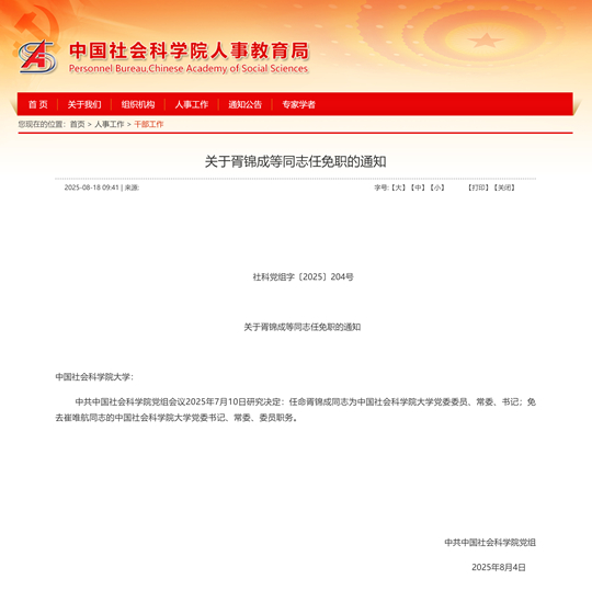 胥錦成同志任中國社會科學(xué)院大學(xué)黨委書記