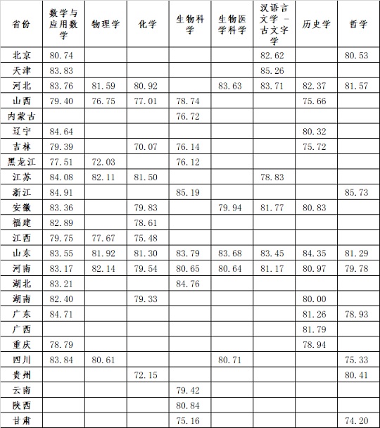 根據(jù)教育部有關(guān)文件精神和《山東大學(xué)2023年強基計劃招生簡章》規(guī)定,經(jīng)學(xué)校考核測試,現(xiàn)將我校2023年強基計劃分省分專業(yè)錄取分數(shù)線(綜合成績)公布如下,請考生登陸山東大學(xué)強基計劃報名平臺(https://bm.chsi.com.cn/jcxkzs/sch/10422)查詢本人校考成績和錄取結(jié)果。