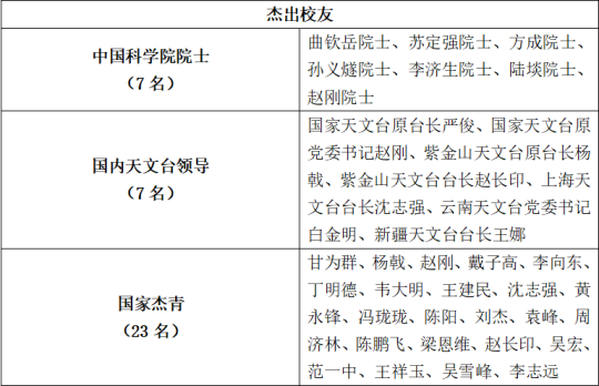 學(xué)院嚴(yán)謹(jǐn)治學(xué),以雄厚的師資力量、濃厚的學(xué)術(shù)氛圍培養(yǎng)了一批又一批天文學(xué)領(lǐng)域的知名學(xué)者,從這里走出了7位聲譽(yù)卓著的中國科學(xué)院院士、多位國內(nèi)主要天文單位的領(lǐng)導(dǎo)和學(xué)術(shù)帶頭人、國際著名學(xué)者等,在天文學(xué)界烙下深深的“南大印記”,贏得社會(huì)的廣泛認(rèn)同。學(xué)院積極參與深空探測(cè)(探月工程)、載人航天、二代導(dǎo)航等重大航天任務(wù),培養(yǎng)了大批航天領(lǐng)域的骨干人才,為我國航天事業(yè)作出了重要貢獻(xiàn)。