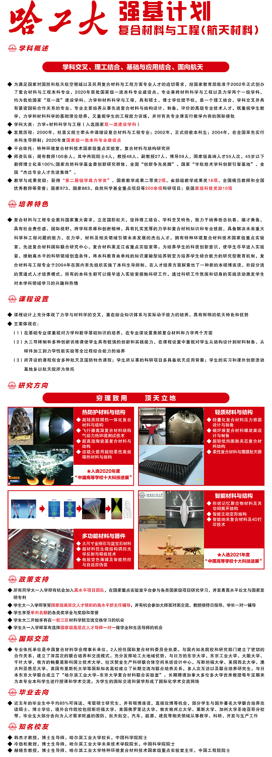 專業(yè)解讀 | 秒懂2024年哈爾濱工業(yè)大學(xué)“強(qiáng)基計(jì)劃”專業(yè)——復(fù)合材料與工程(航天材料)