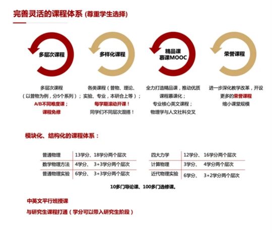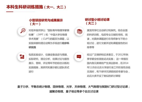 北大物理學(xué)院提供全方位的綜合學(xué)術(shù)素質(zhì)訓(xùn)練和科研創(chuàng)新能力訓(xùn)練,根據(jù)學(xué)生的知識儲備,不同年級的側(cè)重點有所不同。