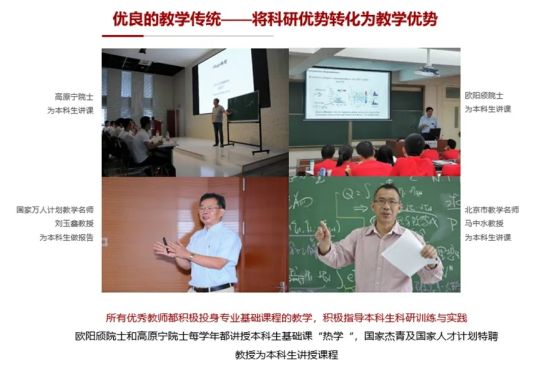 北大物理學(xué)院擁有強大的教學(xué)團隊,以保證教學(xué)質(zhì)量,將科研優(yōu)勢轉(zhuǎn)化為教學(xué)優(yōu)勢。院士、名師等都積極投身各門基礎(chǔ)課程的教學(xué),積極參與指導(dǎo)本科生科研訓(xùn)練與實踐。