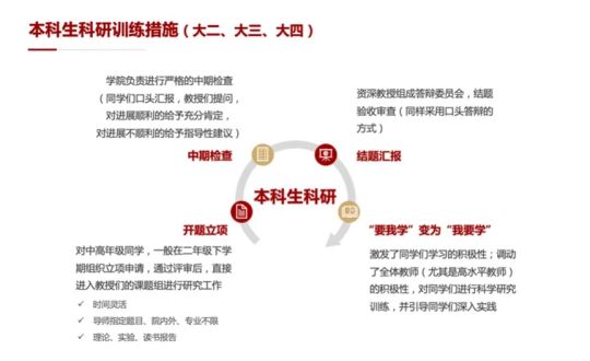 高年級時則進行本科生科研訓(xùn)練與實踐,基于物理學(xué)院學(xué)科齊全的研究課題組,以具體科研課題立項來實施;四年級完成本科生畢業(yè)(學(xué)士學(xué)位)論文,以系所為單位組織論文答辯。