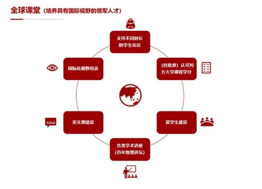 北大物理學(xué)專業(yè)著力建設(shè)國際化教學(xué)合作平臺,拓展各種形式的教學(xué)科研交流,積極推進本科生的國際化培養(yǎng)形式。