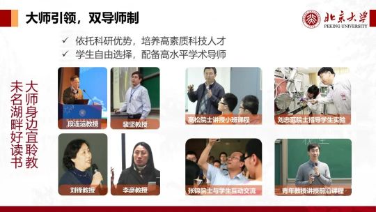 設(shè)立學(xué)業(yè)導(dǎo)師和學(xué)術(shù)導(dǎo)師雙導(dǎo)師制。聘請院士、長江學(xué)者等擔(dān)任本科生研究的指導(dǎo)老師,全方位指導(dǎo)和幫助學(xué)生成長。