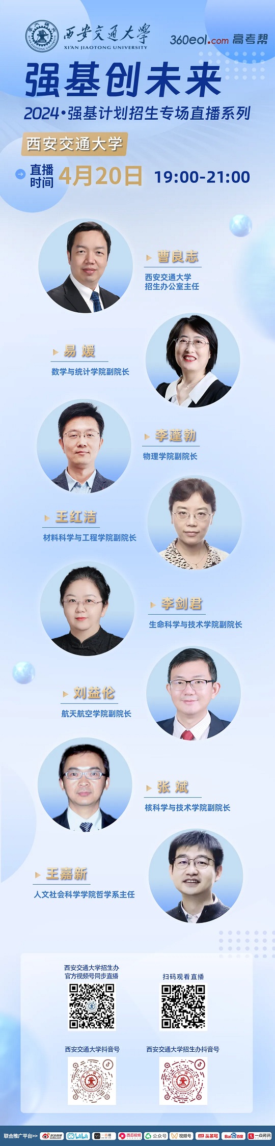 | 直播預(yù)告丨西安交通大學(xué)招辦主任攜七大院長為你全面解讀2024強(qiáng)基計(jì)劃(4月20日) |