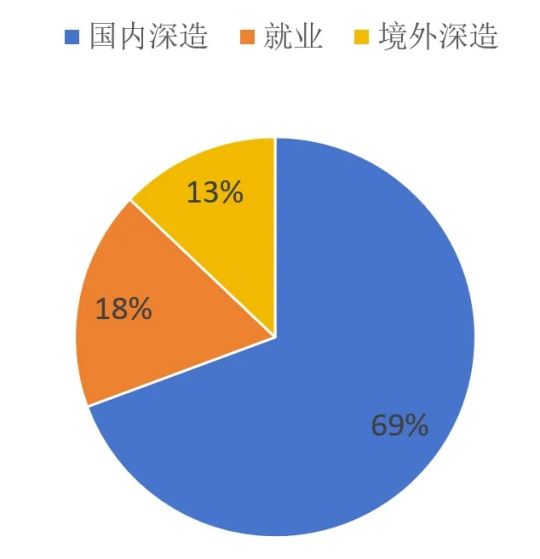2023年應(yīng)屆本科畢業(yè)生共62人,其中國內(nèi)升學(xué)43人,占比69%;境外深造8人,占比13%;就業(yè)11人,占比18%。