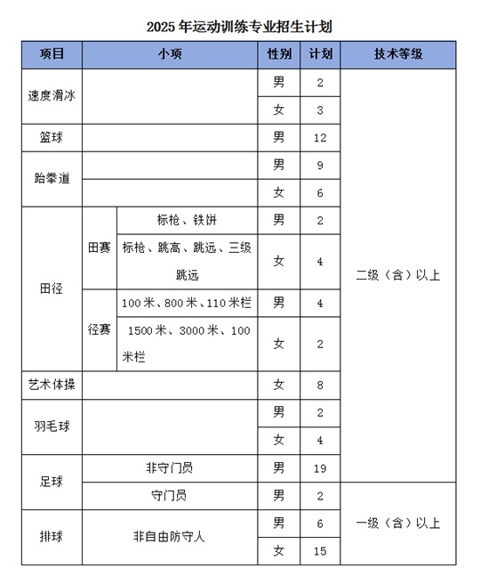。ǘ┚邆湮倚U猩椖恐墸ê┻\動員以上技術(shù)等級稱號,其中排球、足球守門員須具備一級(含)以上運動員技術(shù)等級稱號,考生運動員技術(shù)等級以“國家體育總局運動員技術(shù)等級系統(tǒng)”公示的數(shù)據(jù)信息為準。