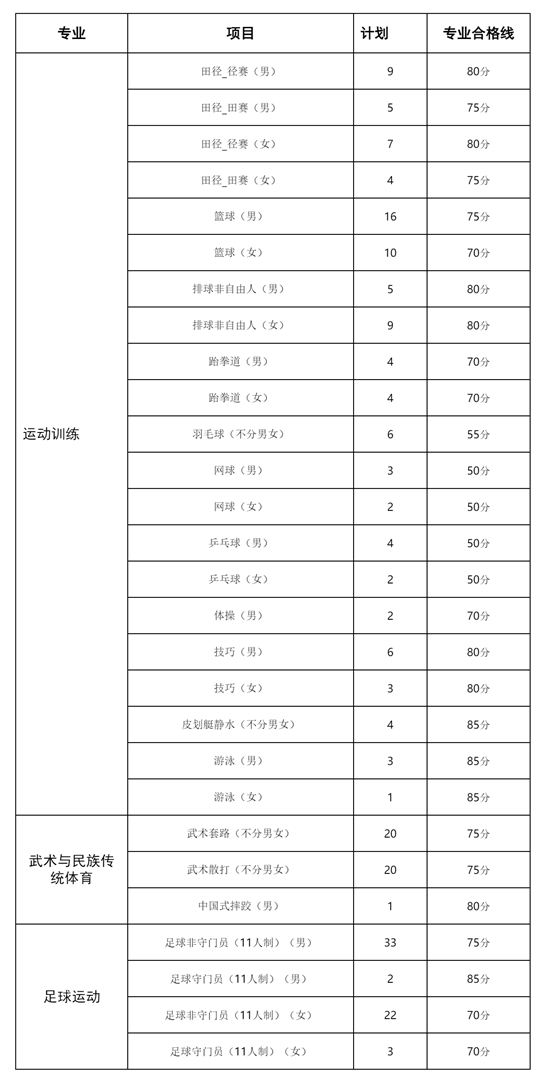 我校足球運(yùn)動(dòng)專業(yè)考試招生納入運(yùn)動(dòng)訓(xùn)練專業(yè)考試招生,并按有關(guān)工作要求執(zhí)行。