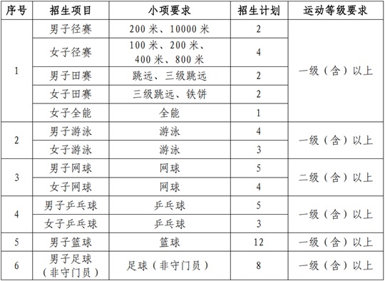 2.具備與我校招生項(xiàng)目要求相對應(yīng)的運(yùn)動員技術(shù)等級資格(等級證書審批日期為2015年1月1日至2025年3月10日),運(yùn)動員技術(shù)等級以“國家體育總局運(yùn)動員技術(shù)等級系統(tǒng)”公示的數(shù)據(jù)信息為準(zhǔn);