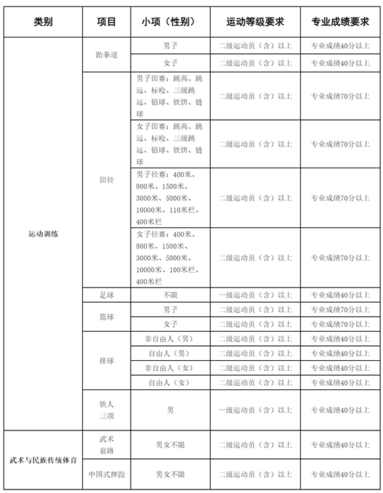 1.招收二級運動員(含)以上:跆拳道、田徑、籃球、排球。