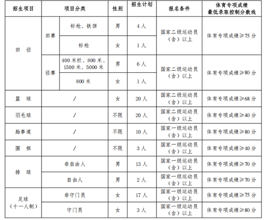 。ǘ⿲(duì)具備一級(jí)運(yùn)動(dòng)員技術(shù)等級(jí)證書的考生,可在我校文化考試成績(jī)最低錄取控制線下降低 30 分錄取;對(duì)具備運(yùn)動(dòng)健將技術(shù)等級(jí)證書的考生,可在我校文化考試成績(jī)最低錄取控制線下降低 50 分錄取。