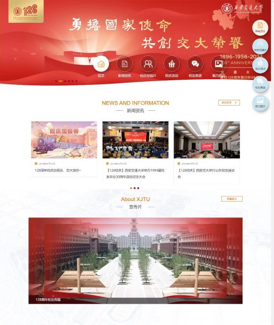 在128校慶之際,西安交通大學(xué)推出128周年校慶專題網(wǎng)站,為廣大校友、師生和社會(huì)各界提供了一個(gè)全面、實(shí)時(shí)了解校慶活動(dòng)的信息平臺(tái)。在黨、校辦,黨委宣傳部、校友部和網(wǎng)絡(luò)信息中心的共同協(xié)作下,已正式上線。