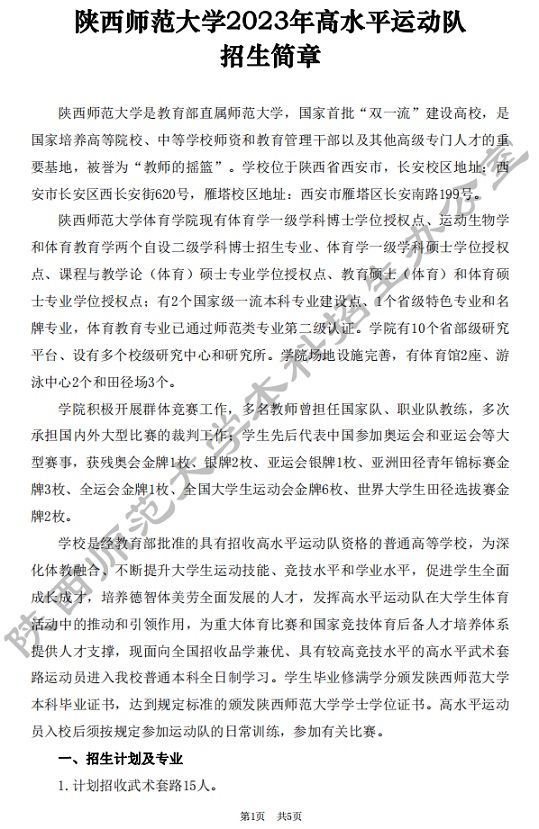 陜西師范大學(xué)2023年高水平運(yùn)動(dòng)隊(duì)招生簡(jiǎn)章