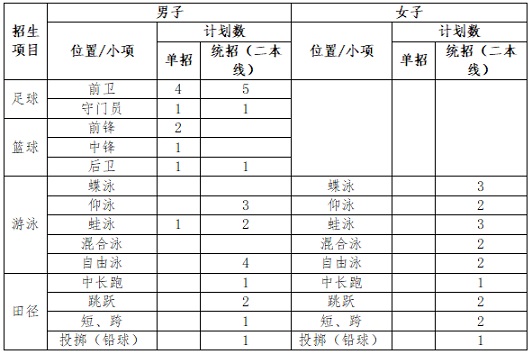 4.田徑項(xiàng)目僅招收100米、200米、400米、800米、1500米、3000米(女)、5000米(男)、100米欄(女)、110米欄(男)、400米欄、跳遠(yuǎn)、三級(jí)跳遠(yuǎn)、跳高、鉛球。