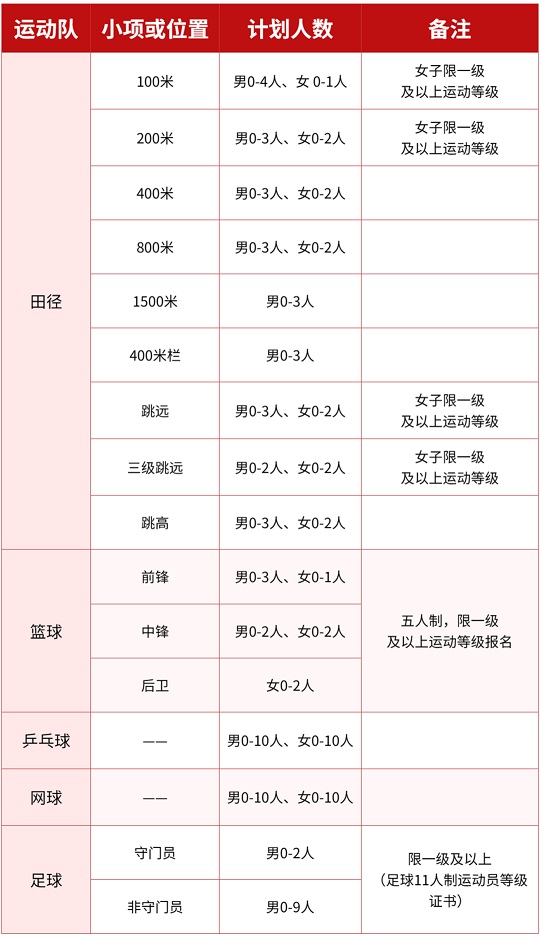 1. 報(bào)考我校高水平運(yùn)動(dòng)員的考生均須參加?迹ňW(wǎng)球、籃球)或全國(guó)統(tǒng)考(足球、乒乓球、田徑)專(zhuān)業(yè)測(cè)試。