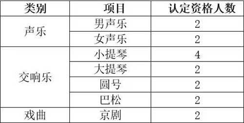 備注:如某項目考生生源質(zhì)量未達到我校高水平藝術團發(fā)展需要,我校將在相關項目間調(diào)劑認定資格名額。