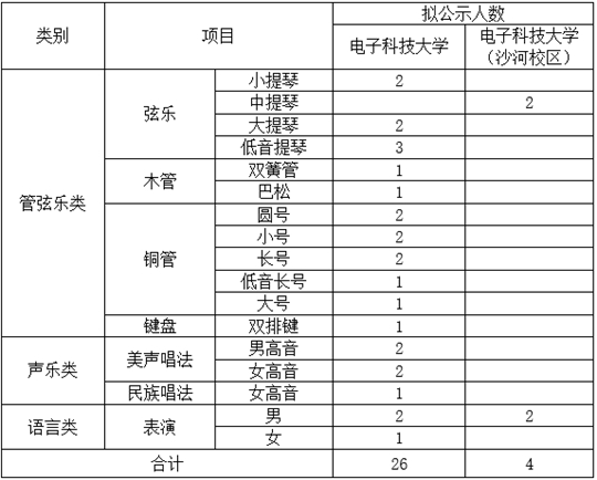 2020年,我校將按電子科技大學(xué)、電子科技大學(xué)(沙河校區(qū))兩個名稱分別確定高水平藝術(shù)團(tuán)備選考生名單和公示考生名單。