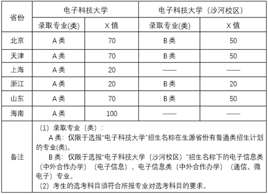 1.“電子科技大學(xué)”和“電子科技大學(xué)(沙河校區(qū))”兩個招生名稱之間的招生計劃不能互相調(diào)整。