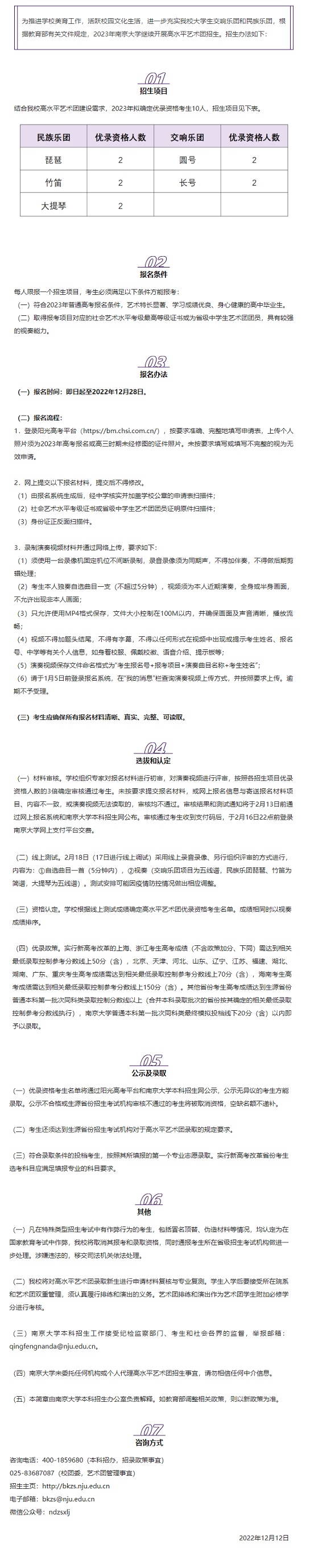南京大學(xué)2023年高水平藝術(shù)團招生簡章