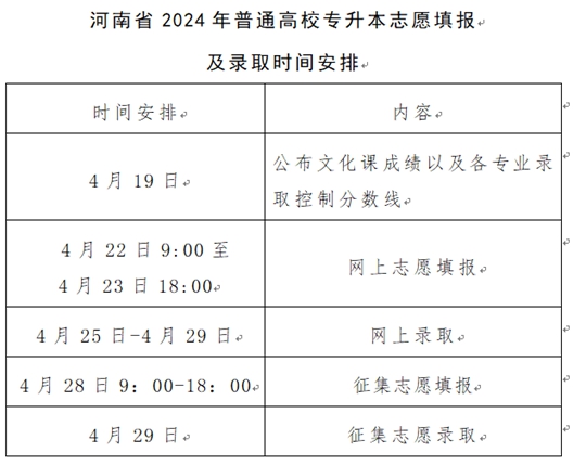 | 河南:2024年普通高校專升本成績公布、志愿填報和錄取工作安排 |