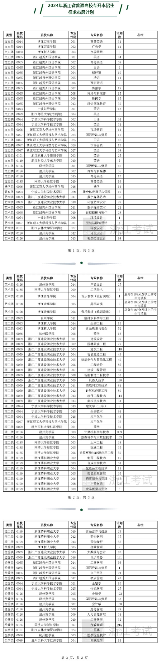 考生可點擊文末“閱讀原文”查看下載征求志愿計劃電子版。征求志愿計劃中,院校的專業(yè)填報條件請查看浙江省教育考試院網(wǎng)站(www.zjzs.net)2024年3月10日發(fā)布的《浙江省教育考試院關(guān)于公布2024年普通高校專升本招生計劃的通知》。