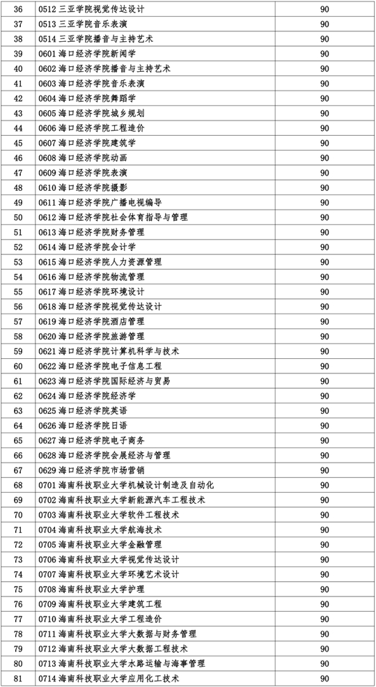 2024年海南省普通高等學(xué)校專升本錄取最低控制分?jǐn)?shù)線為不低于90分,按照招生學(xué)校各專業(yè)招生計(jì)劃數(shù)1:1比例劃定。其中原“建檔立卡貧困家庭畢業(yè)生”專項(xiàng)計(jì)劃錄取最低控制分?jǐn)?shù)線為劃定相應(yīng)專業(yè)錄取分?jǐn)?shù)線下20分(詳見(jiàn)附件1);“退役大學(xué)生士兵”專項(xiàng)計(jì)劃由招生學(xué)校根據(jù)職業(yè)適應(yīng)性或職業(yè)技能綜合考查結(jié)果,并結(jié)合考生在校期間成績(jī)、服役期間表現(xiàn)等情況綜合評(píng)價(jià),按照各專業(yè)招生計(jì)劃數(shù)1:1的比例擇優(yōu)錄取?忌煽(jī)不低于劃定報(bào)考學(xué)校相應(yīng)專業(yè)的最低錄取控制分?jǐn)?shù)線,則確認(rèn)為所報(bào)考學(xué)校相應(yīng)專業(yè)預(yù)錄取的考生,考生也可向報(bào)考學(xué)校查詢本人的預(yù)錄取信息。