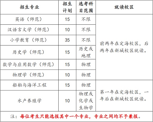 注:有關綜合素質測試安排將提前在浙江海洋大學本科招生網進行公布。