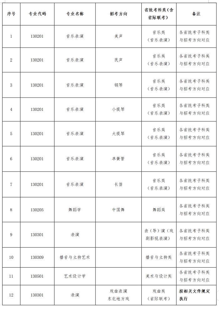 *注:表演(戲曲表演)(東北地方戲)招生按照省際聯(lián)考相關(guān)文件執(zhí)行。
