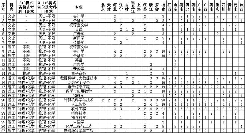 廈門(mén)大學(xué)馬來(lái)西亞分校2024年分省招生計(jì)劃如下: