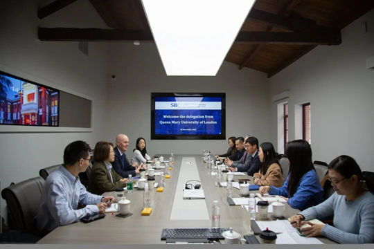 在交流環(huán)節(jié),蔡卉介紹了中英國(guó)際學(xué)院建院近二十年來(lái)的發(fā)展歷程,以及學(xué)院通過(guò)特色的“一對(duì)多”辦學(xué)模式開(kāi)展中外合作辦學(xué),為社會(huì)培養(yǎng)了一大批具有寬廣國(guó)際視野和扎實(shí)專業(yè)基礎(chǔ)的國(guó)際化復(fù)合型人才,取得了良好的社會(huì)聲譽(yù),榮獲2025“杰出中外合作辦學(xué)機(jī)構(gòu)”稱號(hào)。希望通過(guò)此次會(huì)議,把握高等教育數(shù)字化轉(zhuǎn)型與跨學(xué)科創(chuàng)新的發(fā)展趨勢(shì),在辦學(xué)層次、人才培養(yǎng)、科研創(chuàng)新、專業(yè)共建等方面進(jìn)一步推動(dòng)合作,以高水平的國(guó)際化合作辦學(xué)為兩校發(fā)展注入新的動(dòng)力。學(xué)院商科專業(yè)負(fù)責(zé)人王軻和工科專業(yè)負(fù)責(zé)人Adrian Chong就學(xué)院的專業(yè)特色、教育教學(xué)、人才培養(yǎng)、師資隊(duì)伍等方面進(jìn)行了詳細(xì)介紹。與會(huì)雙方探討了本科項(xiàng)目建設(shè)與發(fā)展,探索聯(lián)合培養(yǎng)高層次合作辦學(xué)項(xiàng)目,并圍繞人工智能+專業(yè)、聯(lián)合實(shí)驗(yàn)室共建、師生訪學(xué)、國(guó)際夏校等議題進(jìn)行了深入交流,為未來(lái)雙方的進(jìn)一步合作奠定了基礎(chǔ)。會(huì)后,倫敦瑪麗女王大學(xué)代表團(tuán)參觀了校園。